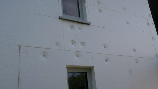 Photos 3 : les panneaux sont collés avec une colle spéciale, dite « colle à dispersion » et chevillés
