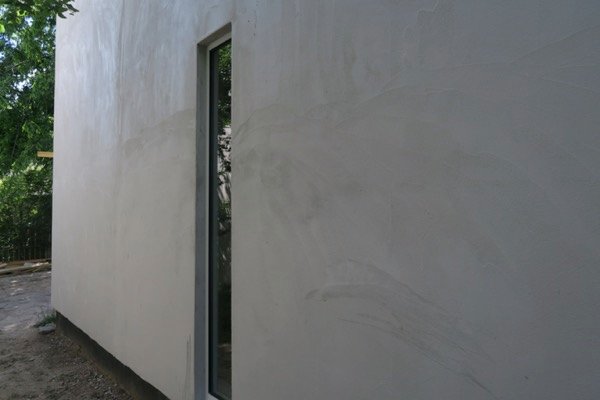 Photo 6 : une fois l’enduit terminé, il n’est pas possible de deviner que nous sommes sur une construction en ossature bois