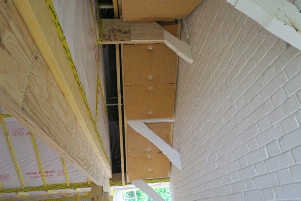 Photo 9 : détail d’isolation thermique de l’ancienne avancée de toiture, désormais, dans l’espace chauffé.