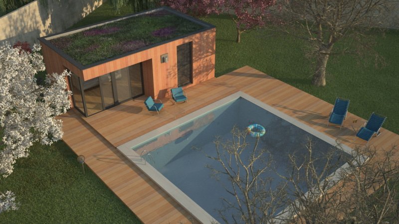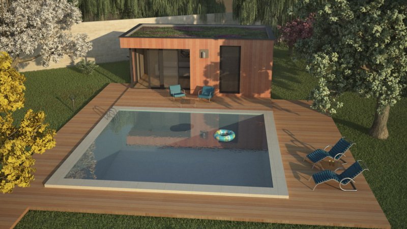 Un beau pool House pour votre piscine ou club de sport. Nos studios permettent de créer des pool-house contemporain, fiables et élégants.