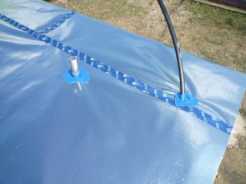 Photo 9 : mise en place du pare-vapeur, qui évitera la condensation dans l’isolant du plancher. Les pénétrations sont traitées avec de la membrane butyle