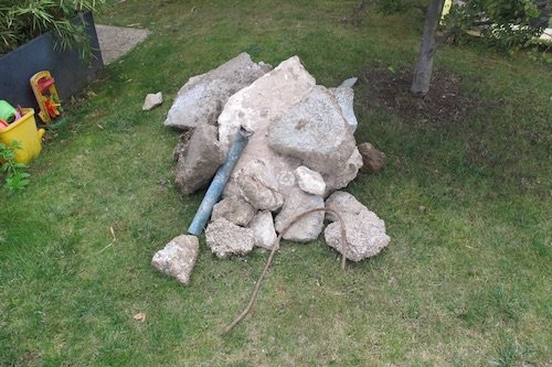 Photo 3 : voici les cadeaux laissés par les maçons qui ont construit la maison…. C’est toujours moins cher d’enterrer ses gravats plutôt que de les évacuer