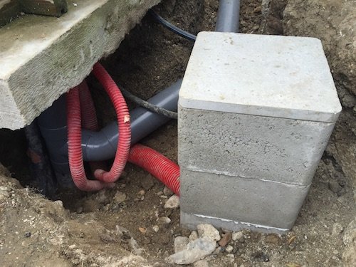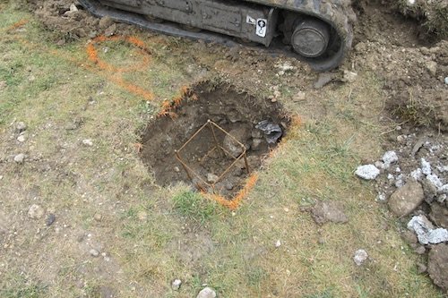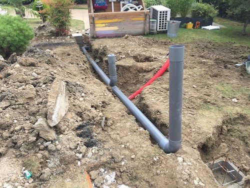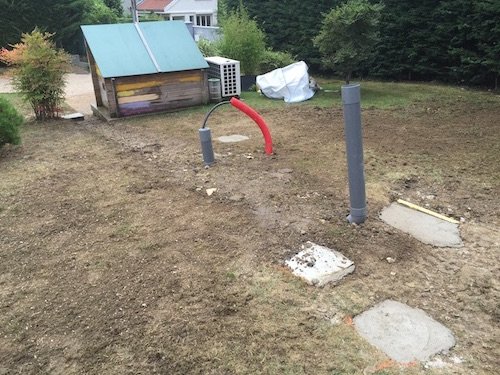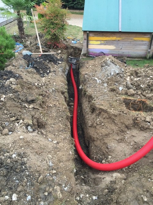 Photo 2 : Le terrain était rempli de cailloux. Nous avons dû utiliser une mini-pelle pour réaliser les tranchées et les fondations
