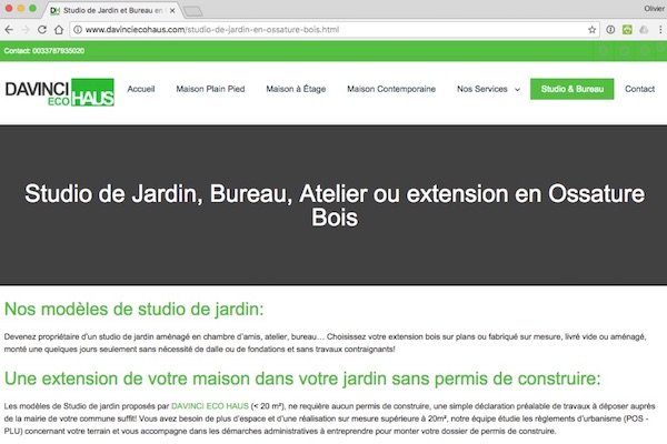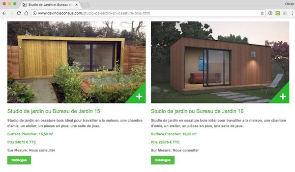 Aujourd’hui, 4 Novembre 2016, je découvre un nouvel acteur de construction de maisons en bois et de studios de jardin : DAVINCI EcoHaus… Rien que ça.