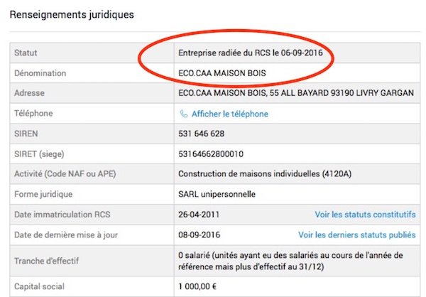 On garde le meilleur pour la fin : la société a été radiée début 2016.