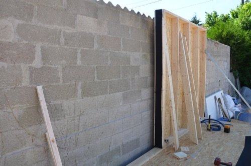 Photo 2 : le premier mur est fixé et soigneusement mis d’équerre et d’aplomb.