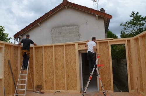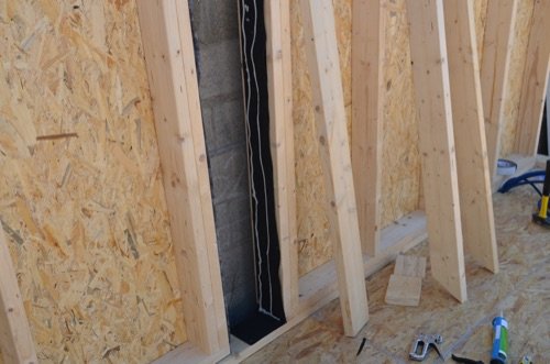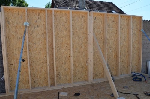 Etape 3 : construction des murs en ossature bois, avec isolation en fibre de bois