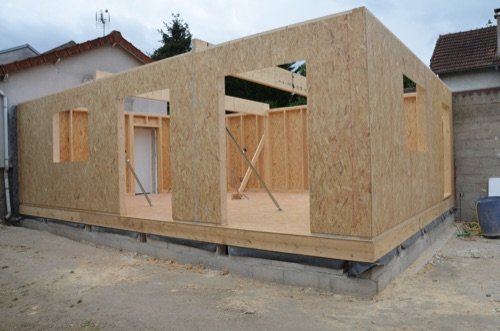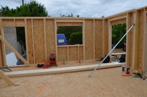 Photo 6 : mise en place des murs avec les ouverture prévues pour les fenêtres et portes-fenêtres