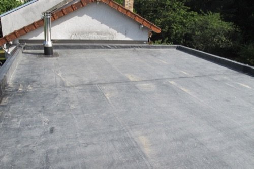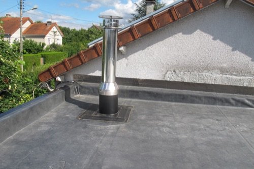 Photo 1 : comme toujours, nous utilisons l’EPDM pour l’étanchéité de la toiture. La membrane dispose d’un Avis Technique et présente une durée de vie de plus de 50 ans