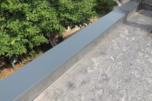 Photo 8 : détail de finition de l’EPDM avec les couvertines sur les acrotères