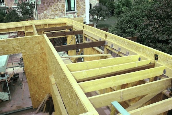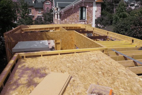 Photo 2 : les pentes pour l’évacuation des eaux pluviales sont préparées dès le solivage.
