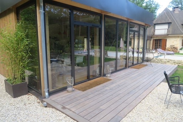 Nous avons réalisé ce magnifique, et grand, studio dans le jardin, à côté de la piscine.