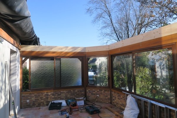 Voici une vue, depuis l’intérieur du toit de la véranda.