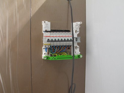Photo 1 : l’installation électrique du studio de jardin est préfabriquée en usine et livrée sous la forme d’un tableau électrique connecté à une « pieuvre »