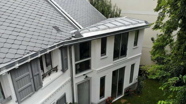 L’intégration avec l’ancienne maison existante était ardue, car bien entendu, « rien n’est droit » et nous avons du nous adapter en permanence à l’existant. Tous les détails d’un projet d’exception étaient réunis : façade rideau, verrière entre les deux toitures, ardoises en losanges et ouvrages de zinguerie complexes, ébrasements sur les tableaux de fenêtres, parements extérieurs etc…