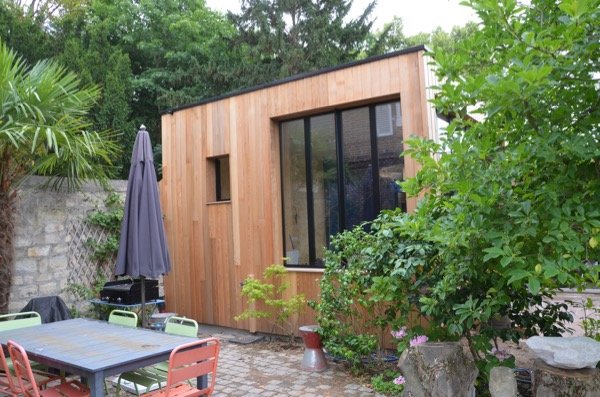 Photo 1 : agrandissement en bois : façade côté avec bardage en red cedar