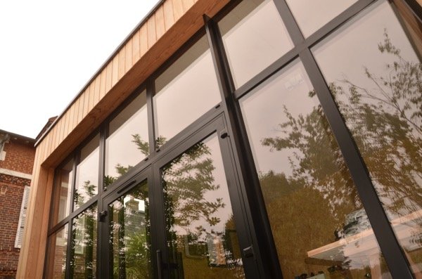 Photo 3 : agrandissement en bois, vue de la façade rideau
