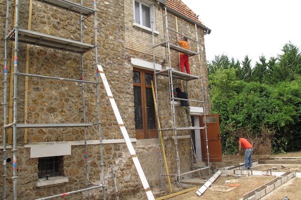 Construction d’une extension contemporaine en ossature bois de 100 m2 (RDC + étage) adossée à une maison en pierre meulière