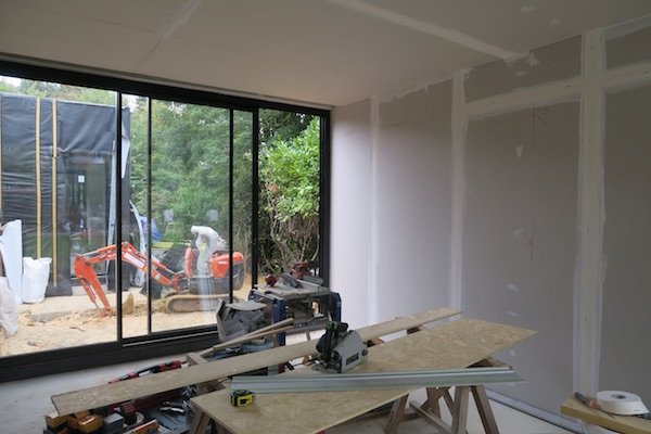 Extension en bois très contemporaine de 100 m2 devant une belle meulière fin 19ème dans les Yvelines