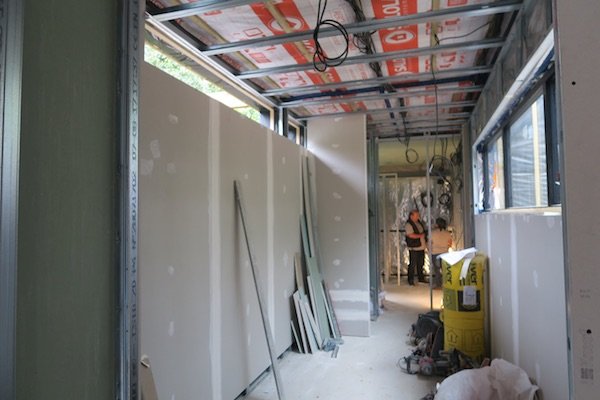 Photo 1 : pare-pluie spécial anti-UV pour le futur bardage à claire-voie en red cedar, et double litonnage