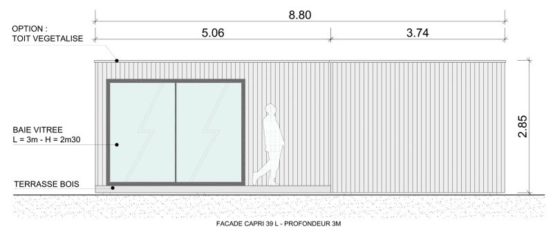 Fenêtres fixes L 80 X H 230 cm, en option, selon implantation