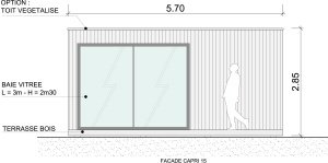 Studio de jardin CAPRI 15 m2. Vue de façade
