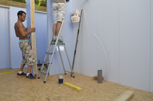 Photo 10 : les cloisons intérieures sont également préfabriquées aux dimensions du plan et sont habillées des panneaux