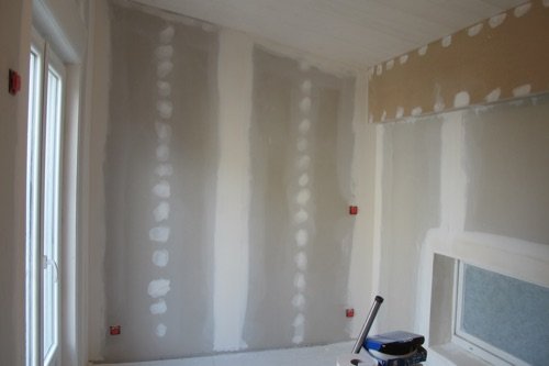 Photo 4 : jointoiement des plaques et enduits